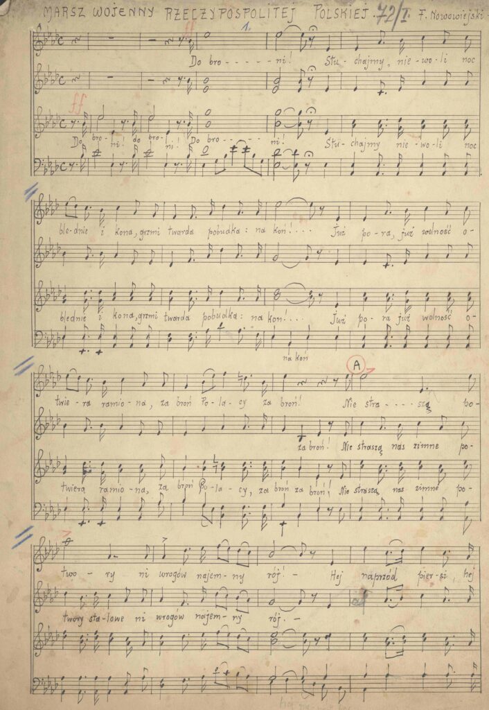 W zasobie Archiwum Państwowego w Przemyślu znajdują się nuty do utworu Feliksa Nowowiejskiego „Marsz wojenny Rzeczypospolitej”. (Towarzystwo Muzyczne w Przemyślu, sygn. 192, s. 1)